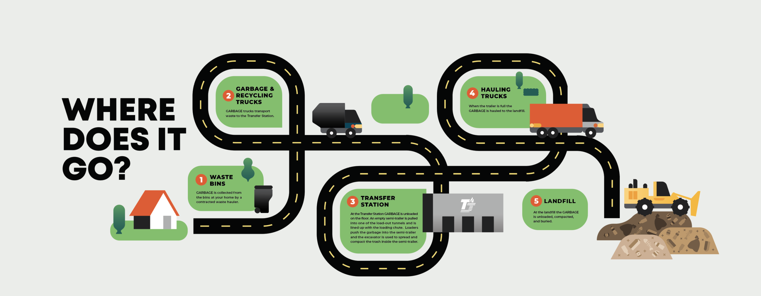 In order to move waste to Bayview Landfill we will be building two waste transfer stations. The first transfer station will be built in Sandy City and opens October 1, 2025.